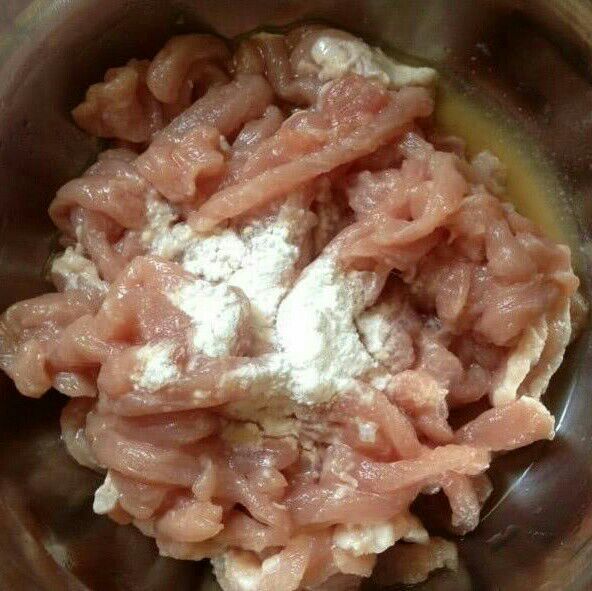 稍微放点淀粉在肉里,放一点油和料酒等调味品,就是腌制的过程,有这个过程不仅能让肉嫩还能充分入味,炒出来的菜也更好吃。不放油的话换成蛋清也不错。