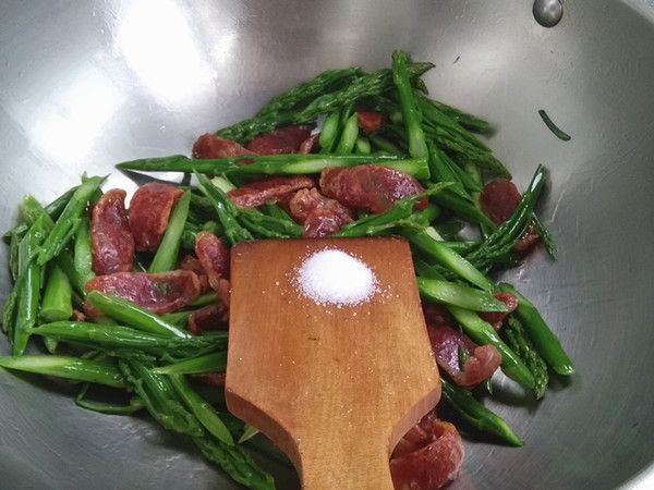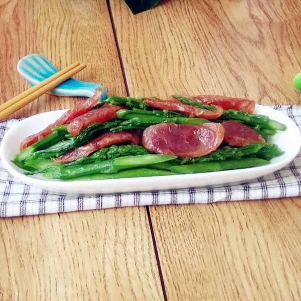 2、香肠味道很好,芦笋很清爽甜香,因此,此菜不宜添加多种调味品。