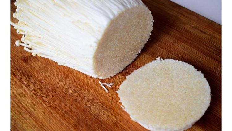 2、把根部切掉。这里说一个小插曲,之前我在哪里看到过一个节目,说是金针菇把根切下来,可以自己养着,让它再长出新的,这样就不用去买金针菇了,于是我就按照那个方法,结果失败了,不仅没长出来,还发霉了。这个金针菇毕竟它不便宜,7块钱一斤,我也不知道是不是真的有这样的培育方法,如果你会培育金针菇,可以教我哦!